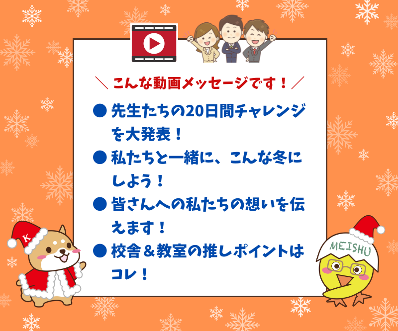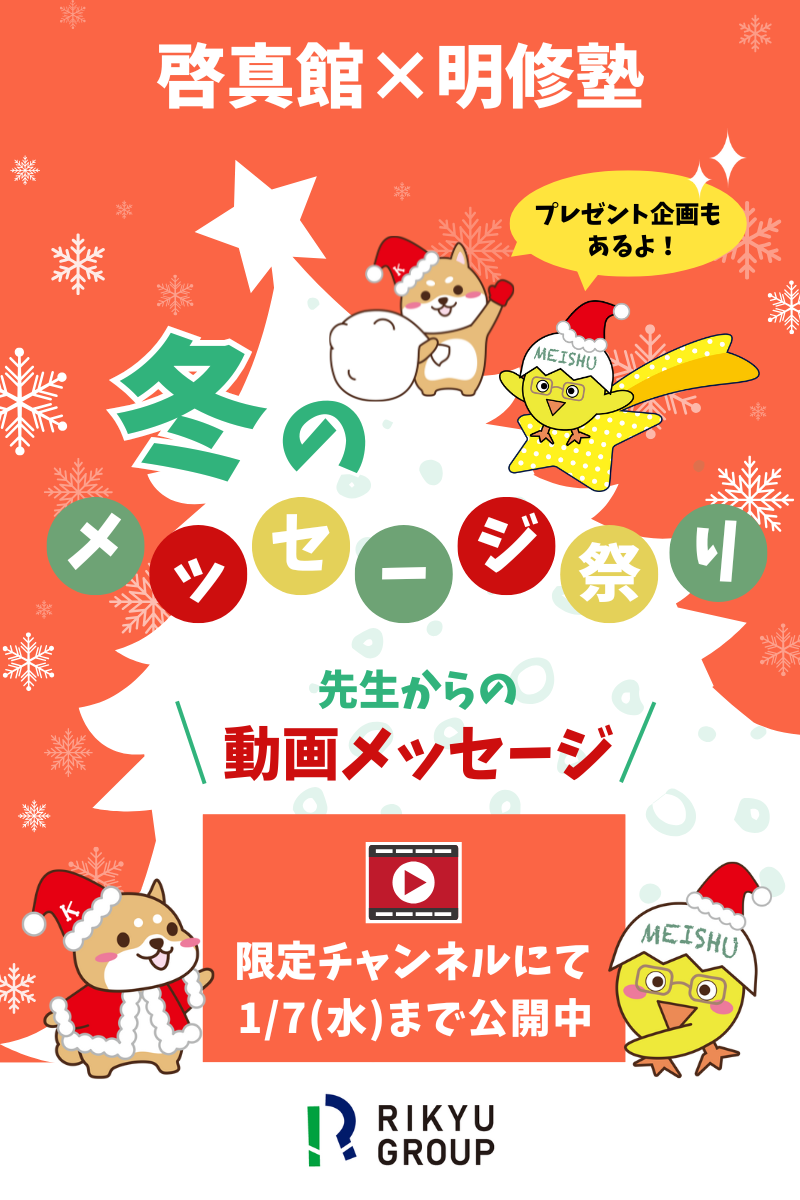 【啓真館×明修塾】冬のメッセージ祭りスタート!キミが知っている校舎や教室 の先生はいるかな?