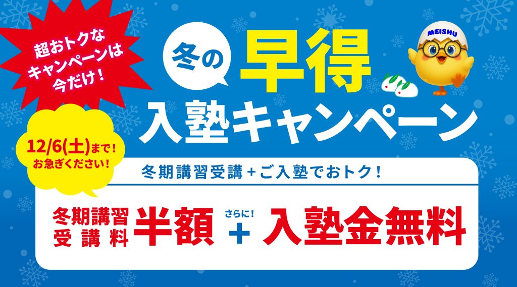 冬期講習受講料半額!+入塾金無料(11,000円→0円)